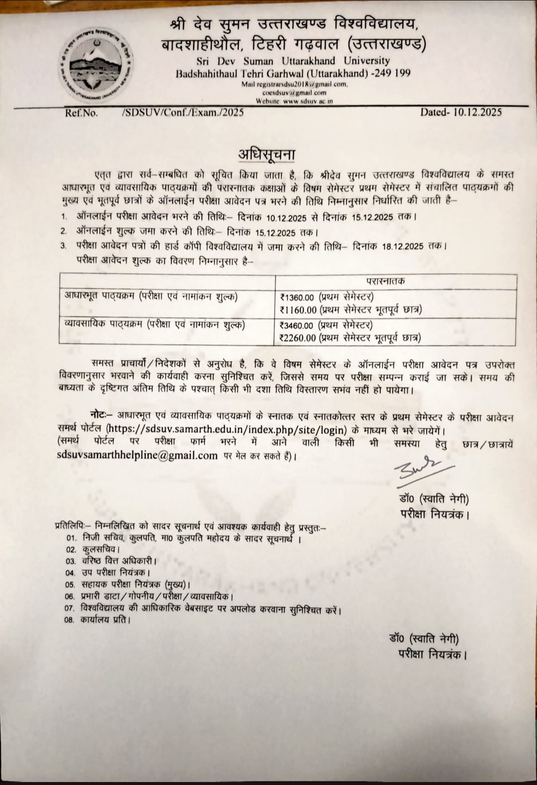 UG/PG 1st Sem Registration date extended till 19-9-25 |